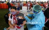 REPUBLIKA.CO.ID,SURABAYA -- Petugas kesehatan menyuntikkan vaksin COVID-19 kepada warga di lapangan thor Gelora Pancasila Surabaya, Jawa Timur, Kamis (29/7/2021).
