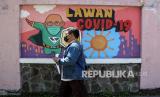 Warga melintas di mural saat mengikuti serbuan vaksinasi COVID-19 di lapangan thor Gelora Pancasila Surabaya, Jawa Timur, Kamis (29/7/2021). Komando Armada (Koarmada) II bersama Pemerintah kota Surabaya melakukan vaksinasi COVID-19 sebanyak 25.000 dosis untuk masyarakat Surabaya guna mewujudkan kekebalan komunal atau  (FOTO : Antara/Umarul Faruq)