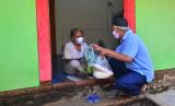 Petugas perangkat desa membagikan paket sayur dan tempe kepada warga di Desa Ploso, Jati, Kudus, Jawa Tengah, Jumat (30/7/2021). Aksi berbagi sayur dan tempe secara gratis hasil donasi dari perkumpulan pedagang sayur dan perajin tempe kepada 50 kepala keluarga itu untuk meringankan beban masyarakat yang perekonomiannya terdampak pandemi COVID-19. (FOTO : ANTARA/Yusuf Nugroho)