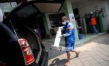 Warga memasukan kupon pengisian ulang oksigen gratis di UD Berkah Oksigen, Depok, Jawa Barat, Jumat (30/7). Yayasan Khadimul Ummah Madani bekerja sama dengan UD Berkah Oksigen menyelenggarakan pengisian ulang tabung oksigen gratis setiap hari jumat pukul 08.30 WIB hingga 17.00 WIB untuk wilayah Kota Depok. Prayogi/Republika (FOTO : Prayogi/Republika.)