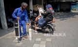 Pekerja membatu warga usai melakukan pengisian tabung oksigen gratis di UD Berkah Oksigen, Depok, Jawa Barat, Jumat (30/7). Yayasan Khadimul Ummah Madani bekerja sama dengan UD Berkah Oksigen menyelenggarakan pengisian ulang tabung oksigen gratis setiap hari jumat pukul 08.30 WIB hingga 17.00 WIB untuk wilayah Kota Depok. Prayogi/Republika (FOTO : Prayogi/Republika.)
