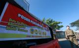 Petugas Satpol PP bersiaga di posko perbatasan Kota Gorontalo dan Kabupaten Bone Bolango di Tumbihe, Kabupaten Bone Bolango, Gorontalo, Jumat (30/7/2021). Pemerintah Kabupaten Bone Bolango menerapkan Pemberlakukan Pembatasan Kegiatan Masyarakat (PPKM) level tiga hingga 2 Agustus 2021 mendatang seiring peningkatan kasus COVID-19 di daerah itu. (FOTO : ANTARA/Adiwinata Solihin)