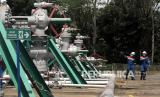 REPUBLIKA.CO.ID, TOMOHON -- Petugas melakukan pengawasan pipa bertekanan tinggi di area sumur panas bumi situs Pembangkit Listrik Tenaga Panas Bumi (PLTP) Lahendong Unit 5-6, Tompaso, Minahasa, Sulawesi Utara, Jumat (30/7/2021). PT Pertamina Geothermal Energy (PGE) merencanakan pembangunan Pembangkit Listrik Tenaga Panas Bumi (PLTP) Binary Organic Rankine Cycle berkapasitas 500 kilo Watt (kW) untuk mengoptimalikan pemanfaatan energi panas bumi, menekan biaya operasional, serta menunjang program energi hijau pemerintah dan ditargetkan beroperasi pada Desember 2021.