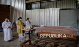 REPUBLIKA.CO.ID, JAKARTA -- Petugas memasukkan peti jenazah COVID-19 untuk dikremasi di TPU Tegal Alur, Jakarta, Jumat (30/7/2021). Pemerintah Provinsi DKI Jakarta bersama Himpunan Perkumpulan Bersatu Teguh menyediakan krematorium gratis untuk jenazah COVID-19, dengan kapasitas tujuh jenazah setiap harinya.
