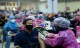 REPUBLIKA.CO.ID,JAKARTA -- Petugas medis menyuntikkan vaksin COVID-19 kepada warga di Sentra Vaksin, JCC Senayan, Jakarta, Sabtu (31/7).