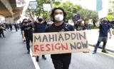 REPUBLIKA.CO.ID, KUALA LUMPUR -- Ratusan orang yang didominasi anak-anak muda dengan mengenakan berbaju hitam berunjuk rasa di Kuala Lumpur, Malaysia, Sabtu (31/7). Dalam unjuk rasa itu, mereka menuntut Perdana Menteri Muhyiddin Yassin mengundurkan diri karena dinilai gagal mengatasi pandemi covid-19.