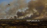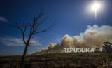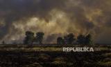 REPUBLIKA.CO.ID, TANAH LAUT -- Asap membubung tinggi dari lahan yang terbakar di Desa Ujung Batu, Kabupaten Tanah Laut, Kalimantan Selatan, Minggu (1/8/2021). Badan Meteorologi Klimatologi dan Geofisika (BMKG) mengeluarkan peringatan dini musim kemarau yang dapat meningkatkan potensi terjadinya Karhutla, dimana berdasarkan data Kementerian Lingkungan Hidup dan Kehutanan (KLHK) selama periode 1 Januari hingga 30 Juni 2021 luas kebakaran hutan dan lahan (Karhutla) di Provinsi Kalimantan Selatan mencapai 876 hektare.
