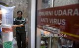 REPUBLIKA.CO.ID, BANDUNG -- Simon Yudistra Sanjaya mengoperasikan alat pemurni udara antivirus di workshop-nya di Jalan Rajawali Timur, Ciroyom, Kota Bandung, Senin (2/8).