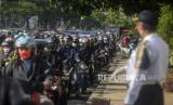 Sejumlah kendaraan terjebak kemacetan saat dilakukan penyekatan di Jalan Raya Margonda, Depok, Jawa Barat, Senin (2/8). Pada hari terakhir Pemberlakuan Pembatasan Kegiatan Masyarakat (PPKM) Level 4, mobilitas warga yang akan menuju Jakarta cenderung meningkat hingga menimbulkan kemacetan mencapai satu kilometer. (FOTO : Republika/Putra M. Akbar)