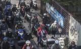 Sejumlah kendaraan menaiki trotoar saat terjebak kemacetan ketika dilakukan penyekatan di Jalan Raya Margonda, Depok, Jawa Barat, Senin (2/8). Pada hari terakhir Pemberlakuan Pembatasan Kegiatan Masyarakat (PPKM) Level 4, mobilitas warga yang akan menuju Jakarta cenderung meningkat hingga menimbulkan kemacetan mencapai satu kilometer. (FOTO : Republika/Putra M. Akbar)