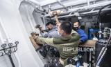REPUBLIKA.CO.ID,JAKARTA -- Awak KRI Bima Suci memasang alat penahan kebocoran kapal saat peran penyelamatan kapal di atas KRI Bima Suci di perairan laut perbatasan Indonesia-Timor Leste, Senin (2/8/2021).