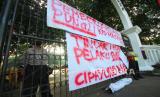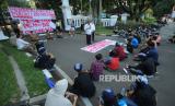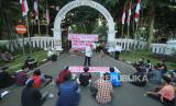 Puluhan mahasiswa dari kelompok Cipayung berdialog dengan pihak terkait saat melakukan aksi di gerbang Balai Kota Bandung, Senin (2/8). Aksi tersebut di antaranya menuntut pemerintah menindak tegas oknum-oknum yang melakukan pungli di tengah pandemi, Pemkot bandung segera memvalidasi dan memperbarui data penerima bansos di Kota Bandung serta pemberian subsidi listrik di kios-kios pedagang khususnya pasar tradisional dan non tradisional. (FOTO : Edi Yusuf/Republika)