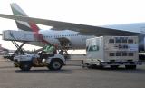 REPUBLIKA.CO.ID,TANGERANG -- Pekerja cargo melakukan bongkar muat Envirotainer berisi vaksin jadi COVID-19 AstraZeneca hibah dari Pemerintah Inggris setibanya di Bandara Soekarno Hatta, Tangerang, Banten, Senin (2/8/2021).