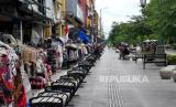Pedagang kaki lima memilih tutup imbas sepinya pengunjung di Malioboro, Yogyakarta, Senin (2/8). Selama PPKM jumlah kunjungan wisatawan ke Malioboro anjlok. Dan Pemerintah kembali memperpanjang PPKM hingga 9 Agustus mendatang. (FOTO : Wihdan Hidayat / Republika)