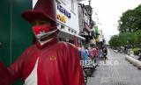 Pedagang menunggu pembeli di Malioboro, Yogyakarta, Senin (2/8). Selama PPKM jumlah kunjungan wisatawan ke Malioboro anjlok. Dan Pemerintah kembali memperpanjang PPKM hingga 9 Agustus mendatang. (FOTO : Wihdan Hidayat / Republika)