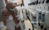 REPUBLIKA.CO.ID, JAKARTA -- Relawan menyiapkan oksigen di Kantor Baznas Bazis Tanggap Bencana DKI Jakarta, Selasa (3/8). Baznas (Bazis) DKI Jakarta menyediakan 108 oksigen berukuran 1 meter kubik berserta regulatornya yang siap dipinjamkan secara gratis bagi warga Jakarta yang menjalani isolasi mandiri akibat Covid-19.