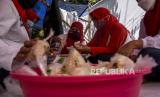 Sejumlah warga menyiapkan makanan untuk warga yang menjalani isolasi mandiri dan terdampak Covid-19 di Dapur Umum dan Posko Bantu Isolasi Mandiri di Cipedes, Sukajadi, Kota Bandung, Selasa (3/8). Komunitas Sahabat Uncle Teebob bersama warga RW 05 Kelurahan Cipedes berinisiatif untuk membagikan 300 porsi makanan serta multivitamin per hari bagi warga yang menjalani isolasi mandiri dan warga terdampak Covid-19 saat perpanjangan PPKM Level 4 di Bandung Raya sebagai bentuk kepedulian terhadap sesama. Foto: Republika/Abdan Syakura (FOTO : REPUBLIKA/ABDAN SYAKURA)