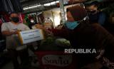 REPUBLIKA.CO.ID, TEGAL -- Pedagang berkeliling mengumpulkan donasi di Pasar Pebedan, Kabupaten Tegal, Jawa Tengah, Selasa (3/8/2021). Donasi oleh Paguyuban Pedagang Pebedan (PPP) tersebut akan dibelikan sembako untuk membantu kebutuhan pedagang pasar tradisional yang menjalani isolasi mandiri COVID-19.