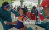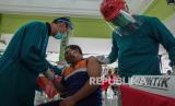 REPUBLIKA.CO.ID, PURWOKERTO -- Petugas menyuntikkan vaksin COVID-19 kepada napi di Lapas kelas II A Purwokerto, Banyumas, Jateng, Selasa (3/8/2021). Lapas kelas II A Purwokerto bekerja sama dengan Dinkes Kabupaten Banyumas dan Korem 071/Wijayakusuma memvaksinasi 696 narapidana untuk mengurangi resiko penularan virus COVID-19 di kalangan napi dan petugas di dalam lapas.