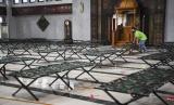 REPUBLIKA.CO.ID, JAKARTA -- Pekerja menyiapkan tempat tidur untuk pasien COVID-19 dengan kategori Orang Tanpa Gejala (OTG) di eks Masjid Darul Jannah, Kantor Wali Kota Jakarta Selatan, Jakarta, Selasa (3/8/2021).
