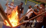 REPUBLIKA.CO.ID, AMBON -- Kepala Badan Narkotika Nasional Provinsi (BNNP) Maluku Kombes Pol. Rohmad Nursahid (kanan) memusnahkan barang bukti ganja kering di Kota Ambon, Maluku, Rabu (4/8/2021). BNNP selama periode Januari-Juni 2021 berhasil mengungkap delapan kasus narkoba dan menangkap 14 tersangka, dengan barang bukti ganja seberat 3,26 kilogram, tembakau sintesis 21,4 gram dan 161,83 gram narkoba jenis sabu senilai hampir Rp1 miliar. ANTARA FOTO/FB Anggoro/aww.