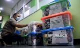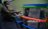 Relawan menyiapkan bantuan paket nutrisi isolasi mandiri yang akan didistribusikan untuk pasien Covid-19 di Kantor Dompet Dhuafa, Ciputat, Tangerang Selatan, Banten, Rabu (4/8). Dari awal Juli hingga saat ini Dompet Dhuafa telah mendistribusikan sebanyak 176 bantuan paket nutrisi isolasi mandiri kepada warga di wilayah Jabodetabek dan program ini akan masih terus berjalan selama pandemi Covid-19.Prayogi/Republika. (FOTO : Prayogi/Republika.)