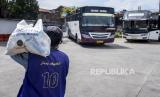 Seorang pelaku transportasi darat berjalan membawa sembako usai kegiatan pemberian bantuan sosial (Bansos) bagi pelaku usaha transportasi darat di Terminal Leuwipanjang, Kota Bandung, Rabu (4/8). Kementerian Perhubungan Direktorat Jenderal Perhubungan Darat bersama Pemerintah Daerah (Pemda) Provinsi Jawa Barat membagikan sebanyak 1.000 bantuan sosial sembako kepada pelaku transportasi darat seperti sopir, kondektur, pengemudi ojek daring, dan warga sekitar yang terdampak pandemi Covid-19. Foto: Republika/Abdan Syakura (FOTO : REPUBLIKA/ABDAN SYAKURA)