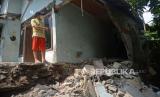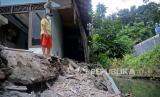 REPUBLIKA.CO.ID, JAKARTA -- Warga mengamati puing bangunan rumah yang lonsor di Jalan Kaja II RT 14/RW 11, Ciracas, Jakarta, Kamis (5/8). Kejadian lonsor yang terjadi pada Senin (2/8) tersebut diduga akibat tergerus air dan mengakibatkan satu rumah yang berada di bibir Kali Cipinang mengalami rusak. Warga berharap lonsor tersebut segera diperbaiki agar tidak mengakibatkan banjir jika hujan turun.