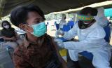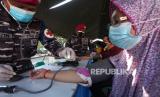 REPUBLIKA.CO.ID, SURABAYA -- Petugas kesehatan memeriksa tekanan darah warga sebelum disuntikkan vaksin saat Serbuan Vaksinasi Covid-19 TNI Angkatan Laut di Kenjeran Park, Surabaya, Jawa Timur, Kamis (5/8/2021). Pasmar 2 Korps Marinir TNI Angkatan Laut menggelar vaksinasi Covid-19 di kawasan pesisir itu yang bertujuan untuk mewujudkan kekebalan kelompok (herd immunity) menuju Indonesia sehat.
