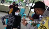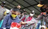 REPUBLIKA.CO.ID, KENDARI -- Kapolda Sulawesi Tenggara Irjen Pol Yan Sultra Indrajaya (kanan) memberikan bingkisan ke seorang tunanetra saat kegiatan vaksinasi di Polsekta Mandonga, Kendari, Sulawesi Tenggara, Kamis (5/8/2021). Puluhan penyandang disabilitas menjalani vaksinasi Covid-19 dan pihak Polsekta Mandonga menjemputnya di rumah dengan kendaraan operasional Polri.