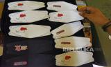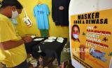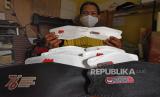REPUBLIKA.CO.ID,SERANG -- Perajin memperlihatkan masker berlogo HUT RI buatanya di Kampung Unyur, Serang, Banten, Kamis (5/8/2021).