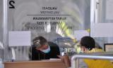 Petugas memeriksa persyaratan dokumen kesehatan calon penumpang pesawat udara di Terminal Domestik Bandara Internasional I Gusti Ngurah Rai, Badung, Bali, Kamis (5/8/2021). Pengelola Bandara Ngurah Rai mencatat telah melayani sebanyak 84.115 orang penumpang selama bulan Juli 2021 atau menurun sebesar 81 persen jika dibandingkan dengan capaian bulan Juni 2021 terkait dengan adanya pembatasan mobilitas masyarakat khususnya selama masa PPKM. (FOTO : ANTARA/Fikri Yusuf)
