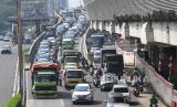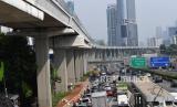 REPUBLIKA.CO.ID, JAKARTA -- Sejumlah kendaraan terjebak kemacetan di Jalan Gatot Subroto, Jakarta, Jumat (6/8/2021). Dirlantas Polda Metro Jaya mencatat, pada pelaksanaan PPKM level 4 minggu kedua terdapat kenaikan mobilitas warga Jakarta sebesar 26 persen dibanding saat PPKM darurat dan PPKM mikro.