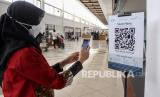 REPUBLIKA.CO.ID, SIDOARJO -- Calon penumpang pesawat melakukan scan QR code melalui aplikasi PeduliLindungi di Bandara Internasional Juanda Surabaya di Sidoarjo, Jawa Timur, Jumat (6/8/2021). PT Angkasa Pura I Kantor Cabang Bandara Juanda mewajibkan calon penumpang pesawat yang akan terbang memiliki aplikasi PeduliLindungi, hal tersebut untuk mendukung penerapan Surat Edaran Menteri Kesehatan tentang Digitalisasi dokumen kesehatan bagi pengguna transportasi udara yang terintegrasi dengan aplikasi tersebut.