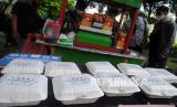 Pedagang menyiapkan makanan ketoprak saat pembagian bantuan makanan untuk warga yang sedang isolasi mandiri (isoman) di halaman Gedung Brajamustika, Kota Bogor, Jawa Barat, Jumat (6/8/2021). Pembagian bantuan makanan dengan memberdayakan pelaku UMKM Kota Bogor yang diadakan Kamar Dagang dan Industri (Kadin) Kota Bogor tersebut sebagai bentuk kepedulian untuk membantu warga yang sedang isoman dan kurang mampu di masa pandemi COVID-19. (FOTO : Antara/Arif Firmansyah)