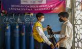 REPUBLIKA.CO.ID, JAKARTA -- Warga membawa tabung oksigen yang telah diisi ulang di AQL Islamic Center, Tebet, Jakarta, Sabtu (7/8). AQL mengadakan sedekah oksigen gratis bagi pasien Covid-19 yang melakukan isolasi mandiri dan membutuhkan isi ulang tabung oksigen. Sebanyak 15 tabung oksigen berukuran 6 kubik disediakan untuk melayani pengisian ulang setiap hari Senin hingga Sabtu dari pukul 09.00 WIB hingga malam hari.