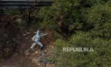 Monumen patung Kapten Muslihat yang disimpan di area proyek pembangunan Alun-Alun Kota Bogor di Jalan Kapten Muslihat, Kota Bogor, Jawa Barat, Senin (9/8). Pembangunan Alun-alun Kota Bogor yang didirikan di lahan eks Taman Topi atau Taman Ade Irma Suryani itu baru mencapai 10 persen dengan anggaran Rp 13,6 miliar dari bantuan Pemerintah Provinsi Jawa Barat dan ditargetkan rampung pada akhir tahun 2021. Republika/Putra M. Akbar (FOTO : Republika/Putra M. Akbar)