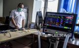 Peneliti mengoperasikan ventilator Sivenesia di Gedung Lembaga Ilmu Pengetahuan Indonesia (LIPI), Jalan Sangkuriang, Kota Bandung, Senin (9/8). Peneliti dari Pusat Penelitian Elektronika dan Telekomunikasi (P2ET) LIPI mengembangkan ventilator Sivenesia (Smart Innovative Ventilator Indonesia) yang menggunakan sistem operasi android dengan dua mode operasi, yakni CPAP (Continuos Positive Airway Pressure) dan BiPAP (Bi-level Positive Airway Pressure) yang bertujuan untuk mencegah tersumbatnya jalan napas serta melatih otot-otot pernapasan pada pasien Covid-19 atau pasien yang memiliki gangguan pernapasan.  (FOTO : REPUBLIKA/ABDAN SYAKURA)