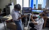 Peneliti memeriksa salah satu komponen ventilator Sivenesia di Gedung Lembaga Ilmu Pengetahuan Indonesia (LIPI), Jalan Sangkuriang, Kota Bandung, Senin (9/8). Peneliti dari Pusat Penelitian Elektronika dan Telekomunikasi (P2ET) LIPI mengembangkan ventilator Sivenesia (Smart Innovative Ventilator Indonesia) yang menggunakan sistem operasi android dengan dua mode operasi, yakni CPAP (Continuos Positive Airway Pressure) dan BiPAP (Bi-level Positive Airway Pressure) yang bertujuan untuk mencegah tersumbatnya jalan napas serta melatih otot-otot pernapasan pada pasien Covid-19 atau pasien yang memiliki gangguan pernapasan.  (FOTO : REPUBLIKA/ABDAN SYAKURA)