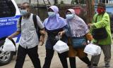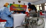 REPUBLIKA.CO.ID, MADIUN -- Penyandang disabilitas berjalan bergandengan usai mendapatkan vaksin COVID-19 di Aula Shelter Dinas Sosial Pemberdayaan Perempuan dan Perlindungan Anak Kota Madiun, Jawa Timur, Senin (9/8/2021). Pemkot Madiun memvaksinasi 89 orang penyandang disabilitas, lima Orang Dengan Gangguan Jiwa (ODGJ) dan enam orang pendamping disabilitas.