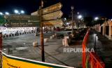 Jalur pedestrian lengang di kawasan Titik Nol Yogyakarta, Senin (9/8). Pemerintah kembali memperpanjang PPKM Level 4, Level 3, dan Level 2 di Jawa - Bali hingga 16 Agustus mendatang. (FOTO : Wihdan Hidayat / Republika)