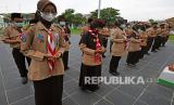 REPUBLIKA.CO.ID, SERANG -- Sejumlah anggota Pramuka mengikuti acara Ziarah dan Doa bersama di Taman Makam Pahlawan di Ciceri, Serang, Banten, Selasa (10/8/2021). Acara digelar dalam rangka menyambut peringatan HUT Pramuka ke-60 serta diisi dengan doa bersama agar pandemi segera berakhir.