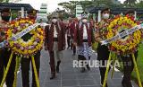 Wali Kota Serang Syafrudin (ketiga kiri) didampingi Wakil Wali Kota Subadri (ketiga kanan) serta sejumlah anggota Pramuka mengikuti acara Ziarah dan Doa bersama di Taman Makam Pahlawan di Ciceri, Serang, Banten, Selasa (10/8/2021). Acara digelar dalam rangka menyambut peringatan HUT Pramuka ke-60 serta diisi dengan doa bersama agar pandemi segera berakhir. (FOTO : Antara/Asep Fathulrahman)