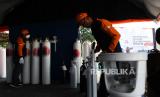 REPUBLIKA.CO.ID, MADIUN -- Petugas melakukan pengisian ulang tabung oksigen secara gratis di Posko Pengisian Oksigen Gratis di halaman Kantor Bakorwil I Madiun, Jawa Timur, Rabu (11/8/2021). Pemprov Jawa Timur menyediakan layanan pengisian ulang tabung oksigen ukuran satu meter kubik secara gratis bagi warga Jawa Timur yang menjalani isolasi mandiri (isoman) dan membutuhkan oksigen guna membantu warga mendapatkan oksigen saat pandemi COVID-19.