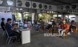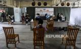 Sejumlah pengunjung menunggu giliran untuk menjalani vaksinasi di Posko Vaksinasi Covid-19 di Paris Van Java (PVJ) Mall, Jalan Sukajadi, Kota Bandung, Kamis (12/8). Pemerintah Kota Bandung melalui Dinkes Kota Bandung dan Disdagin Kota Bandung menyediakan posko vaksinasi covid-19 dengan target 50 hingga 100 dosis vaksin per hari di pusat perbelanjaan untuk memfasilitasi pengunjung yang belum disuntik vaksin dan tidak memiliki sertifikat vaksinasi Covid-19. Foto: Republika/Abdan Syakura (FOTO : REPUBLIKA/ABDAN SYAKURA)