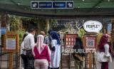Sejumlah pengunjung menunggu giliran untuk memindai kode batang melalui aplikasi Peduli Lindungi sebelum memasuki area Paris Van Java (PVJ) Mall, Jalan Sukajadi, Kota Bandung, Kamis (12/8). Pemerintah Kota Bandung melalui Dinkes Kota Bandung dan Disdagin Kota Bandung menyediakan posko vaksinasi covid-19 dengan target 50 hingga 100 dosis vaksin per hari di pusat perbelanjaan untuk memfasilitasi pengunjung yang belum disuntik vaksin dan tidak memiliki sertifikat vaksinasi Covid-19. (FOTO : REPUBLIKA/ABDAN SYAKURA)
