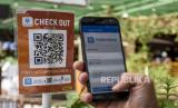 REPUBLIKA.CO.ID,BANDUNG -- Pengunjung memindai kode batang melalui aplikasi Peduli Lindungi sebelum memasuki area Paris Van Java (PVJ) Mall, Jalan Sukajadi, Kota Bandung, Kamis (12/8).