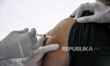 Vaksinator menyuntikkan vaksin Covid-19 jenis AstraZeneca ke pengunjung di Posko Vaksinasi Covid-19 di Paris Van Java (PVJ) Mall, Jalan Sukajadi, Kota Bandung, Kamis (12/8). Pemerintah Kota Bandung melalui Dinkes Kota Bandung dan Disdagin Kota Bandung menyediakan posko vaksinasi covid-19 dengan target 50 hingga 100 dosis vaksin per hari di pusat perbelanjaan untuk memfasilitasi pengunjung yang belum disuntik vaksin dan tidak memiliki sertifikat vaksinasi Covid-19. Foto: Republika/Abdan Syakura (FOTO : REPUBLIKA/ABDAN SYAKURA)