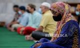 Pengurus mushola menunggu antrean untuk mendapatkan banttuan paket sembako di Masjid At-Taibin, Jakarta, Kamis (12/08). Sebanyak 400 paket sembako beserta uang tunai diberikan kepada sejumlah warga yang terdampak pandemi Covid-19 melalui pengurus mushola di wilayah kelurahan Senen. Republika/Thoudy Badai (FOTO : Republika/Thoudy Badai)