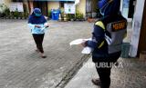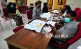 Petugas memeriksa berkas untuk mengambil bantuan beras di Kalurahan Umbulharjo, Sleman, Yogyakarta, Kamis (12/8). Sebanyak 266 beras untuk kompensasi PPKM Darurat disalurkan ke warga penerima manfaat di Umbulharjo. Pengambilan bantuan beras 10 kilogram warga hanya membawa KTP dan kartu keluarga. (FOTO : Wihdan Hidayat / Republika)